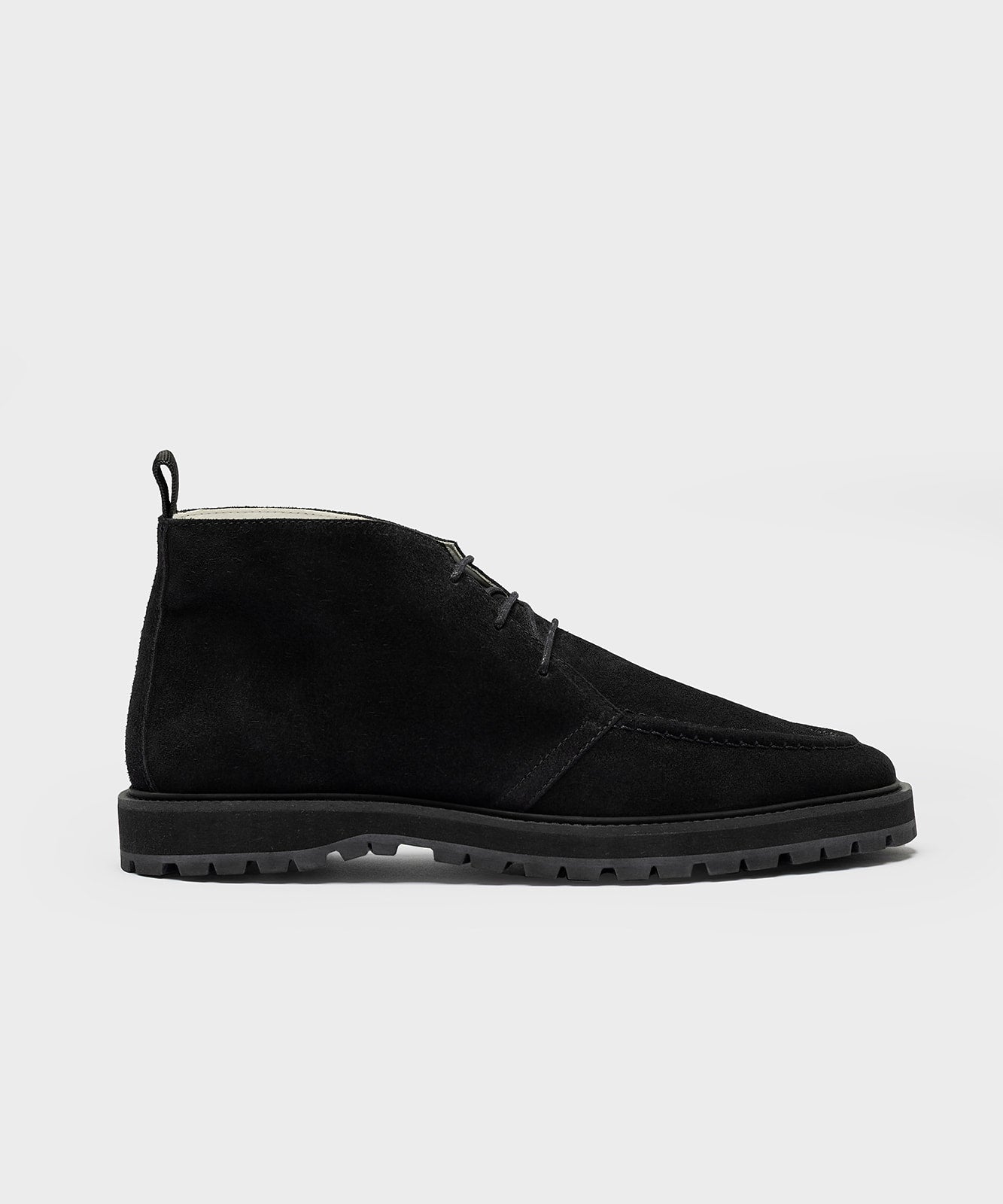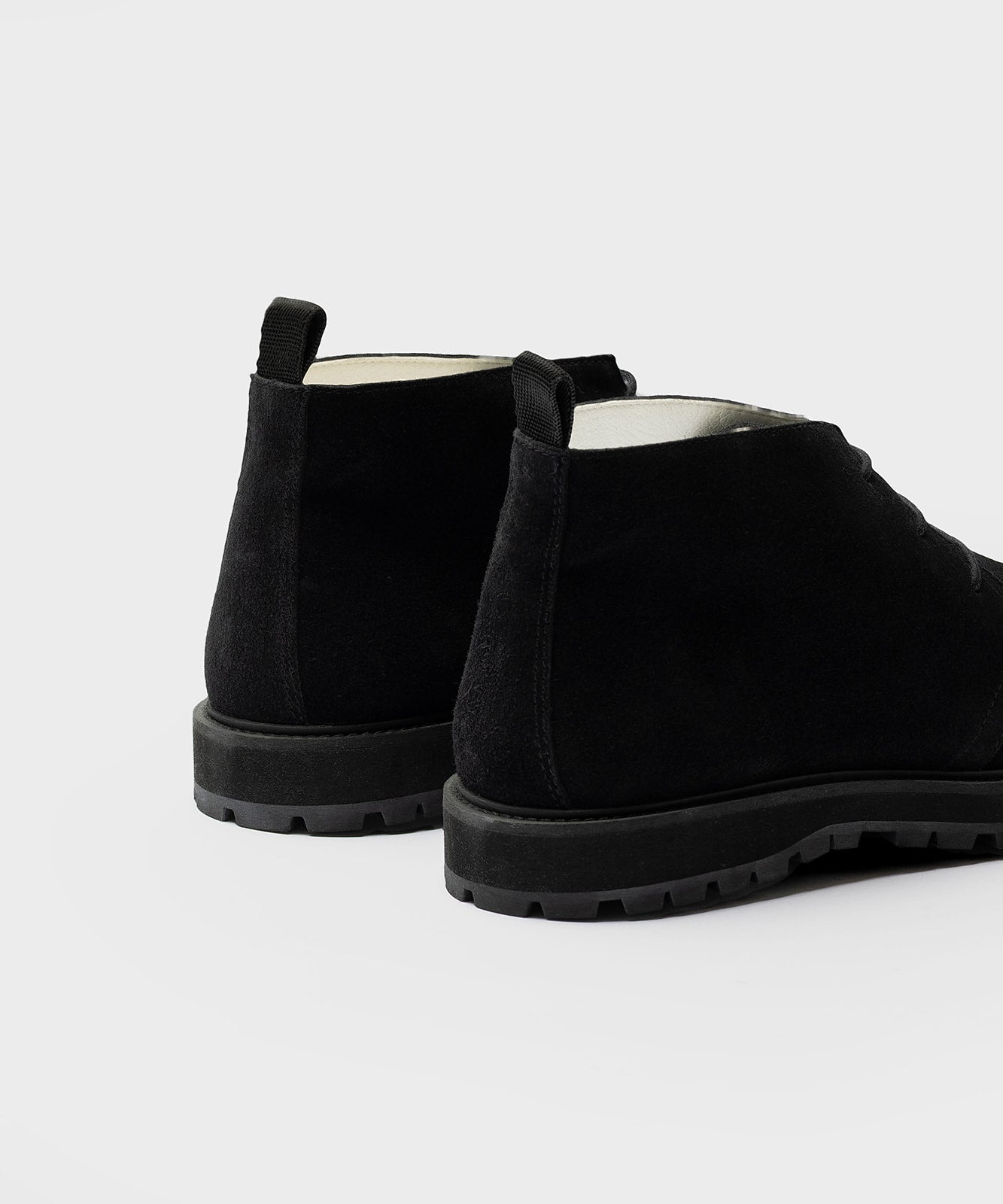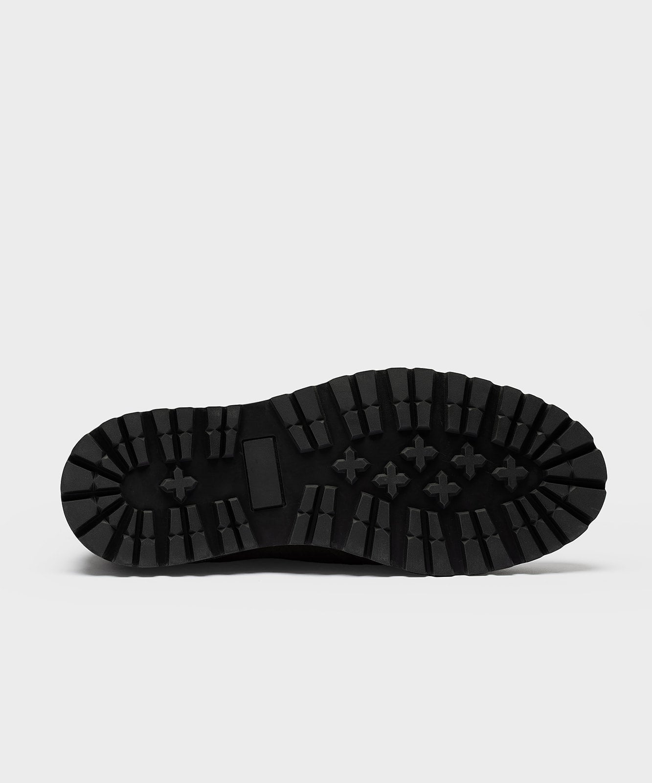 Its clean, utilitarian form rests on a rugged, traction-focused sole, engineered for stability and comfort across city and alpine terrain. Every detail — from the finish of the leather to the subtle contouring of the ankle — is designed with understated luxury and modern performance in mind.